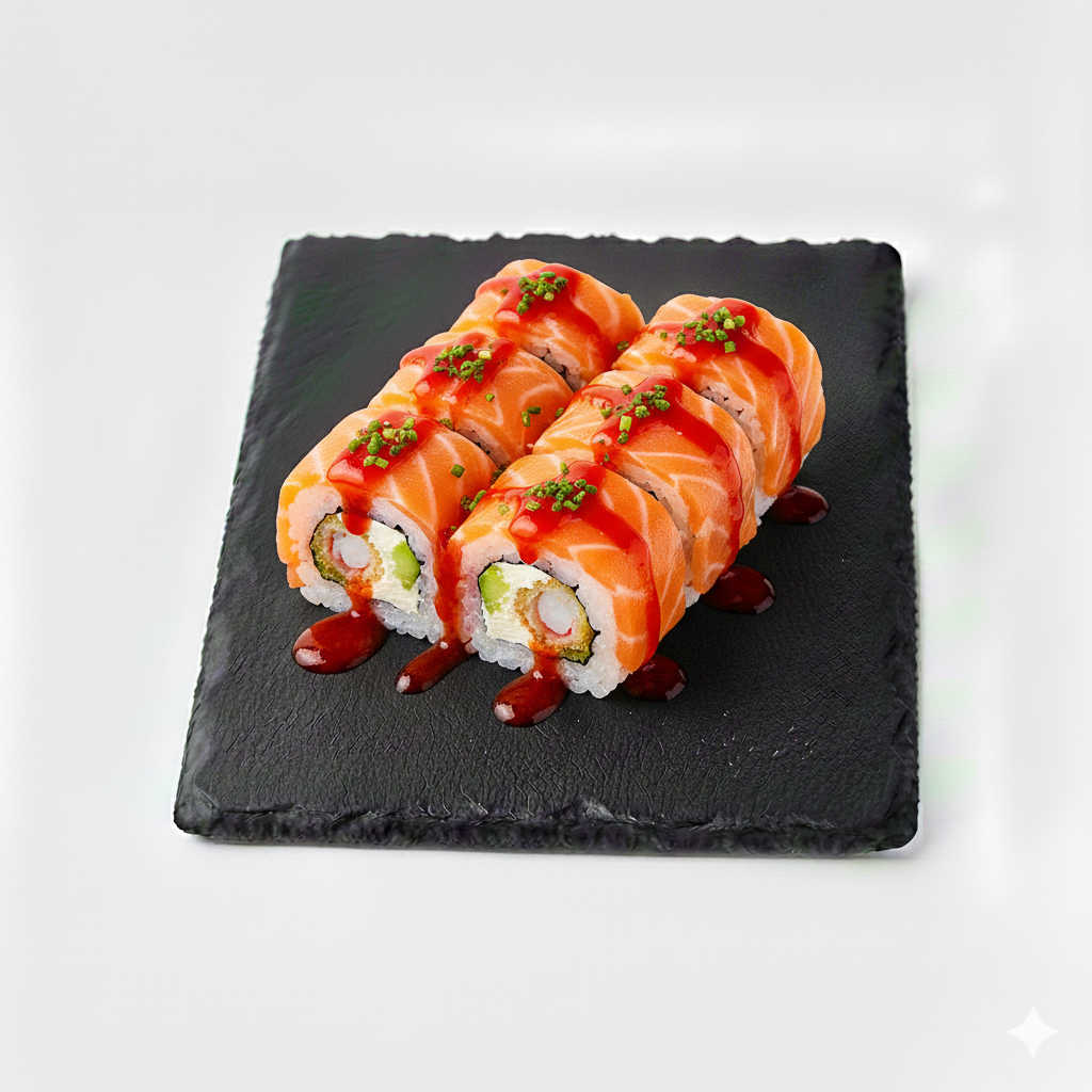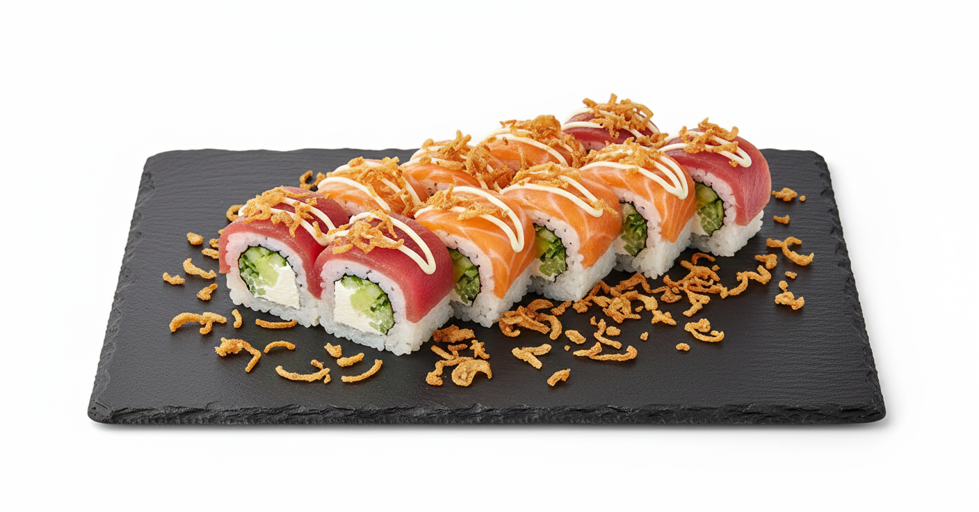 Crevette tempura, avocat, cheese, saumon,...