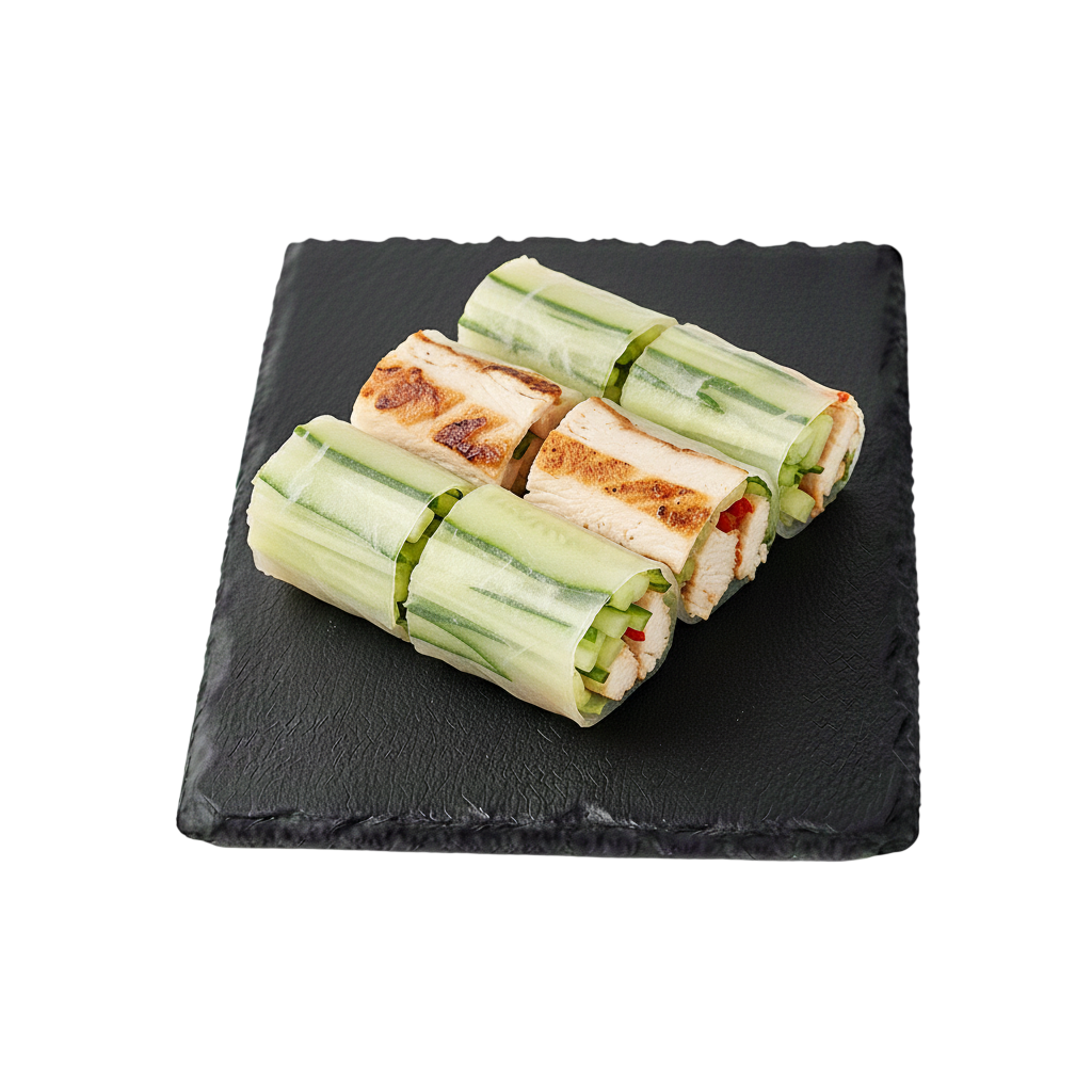 Intérieur: Poulet frit, concombre, carotte,...