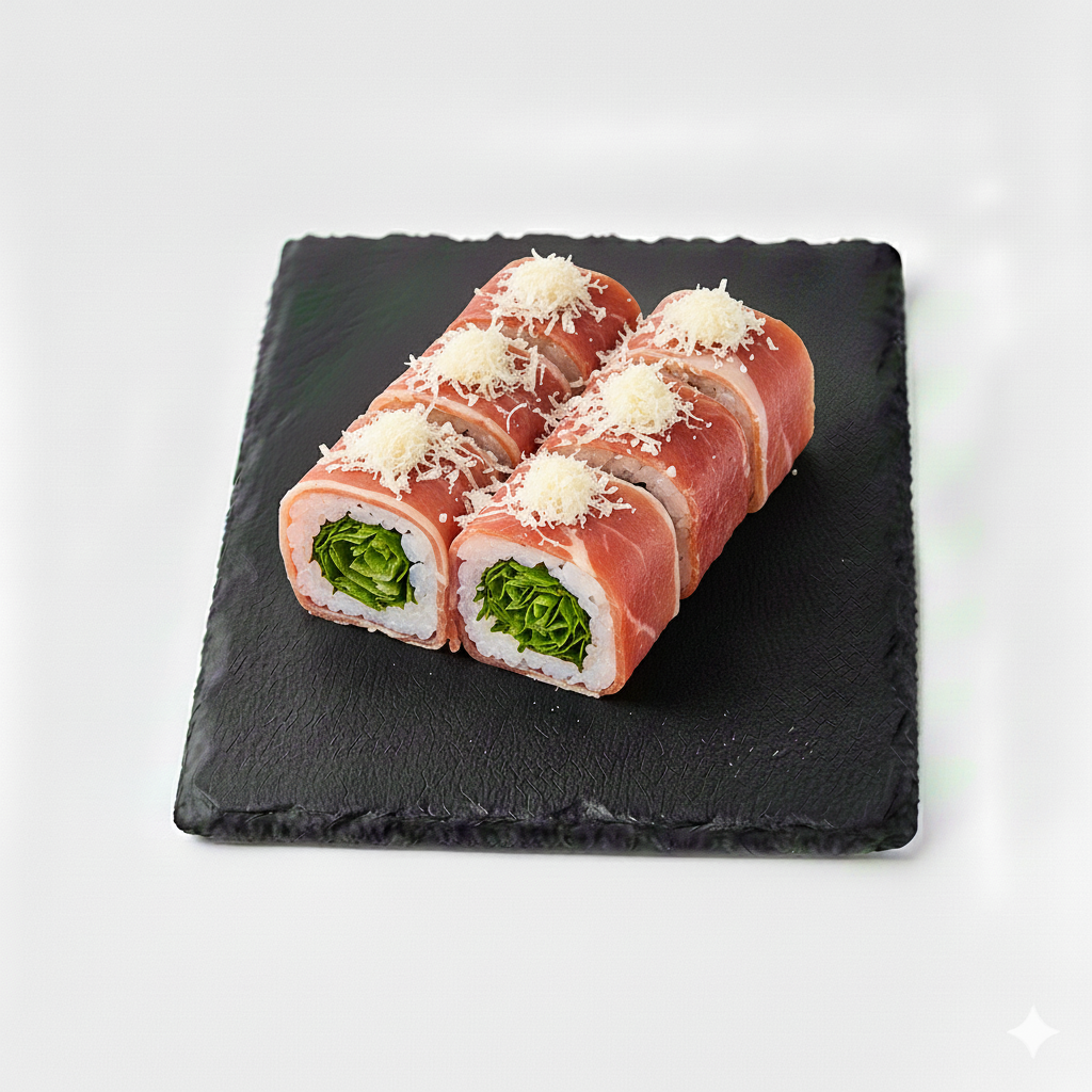 Jambon roll avec grana padano et roquette. Par 6 pièces.