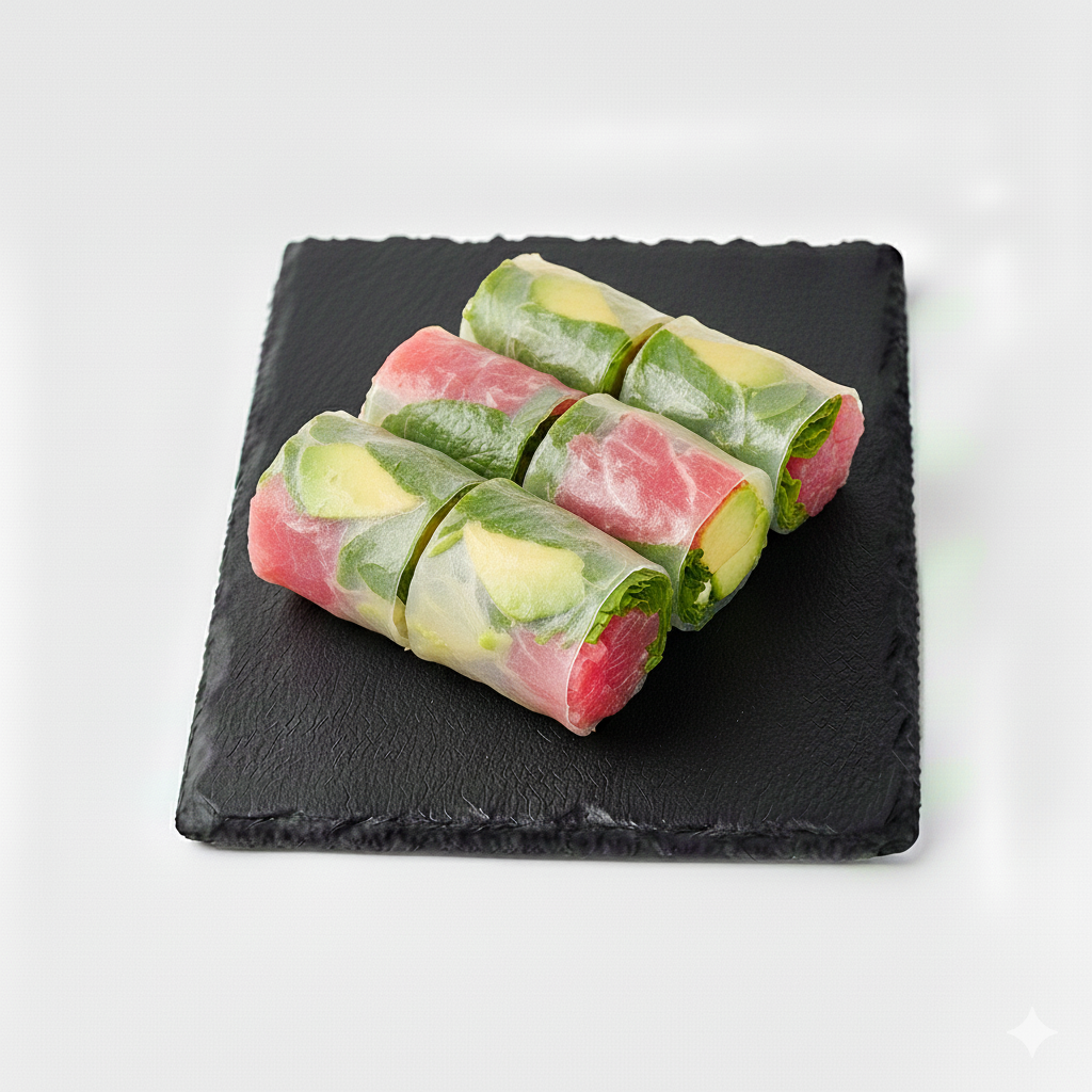 Springrolls avec thon avocat et menthe. Par 6 pièces.
