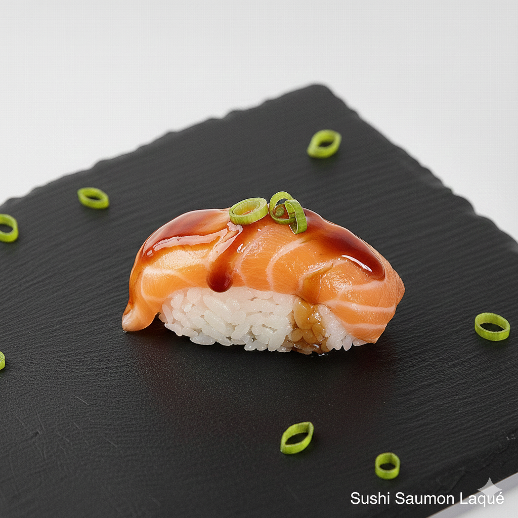 Avocat, roquette, carotte, saumon tataki, ciboulette. Par 8 pièces.